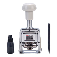 DELI 6 digits automatic numbering stamp machine is precision crafted of one-piece hardened steel frame and finished in high polish chrome. All metal interior construction will provide years of reliable use. Easy to grip handle is made of 100% recycled, high-impact plastic.